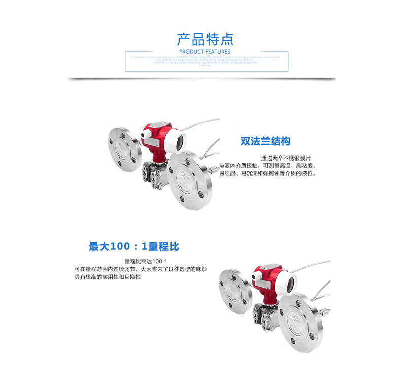 SIN-2051DP雙法蘭差壓液位變送器是一種為避免被測介質直接作用于變送器的遠傳隔離膜片接觸而采用的差壓式變送器(結構測量法)。